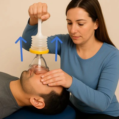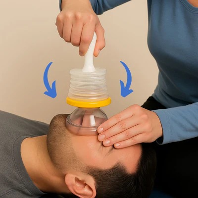 Position the LifeVac mask over the mouth and nose of the choking person to form a secure seal.